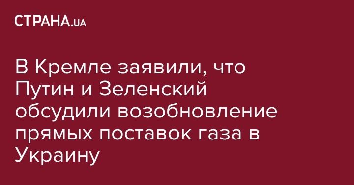 В Кремле заявили, что Путин и Зеленский обсудили возобновление прямых поставок газа в Украину