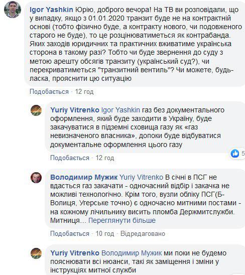 Один из подписчиков чиновника спросил, какие меры будет предпринимать украинская сторона с начала 2020 года, если не будет нового газового контракта с Россией.