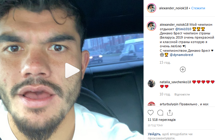 "Мой чемпион отдыхает. Динамо Брест чемпион страны (Беларусь 2019, очень прекрасной и классной страны которую я очень люблю). С чемпионством Динамо Брест", - написал наш легионер.