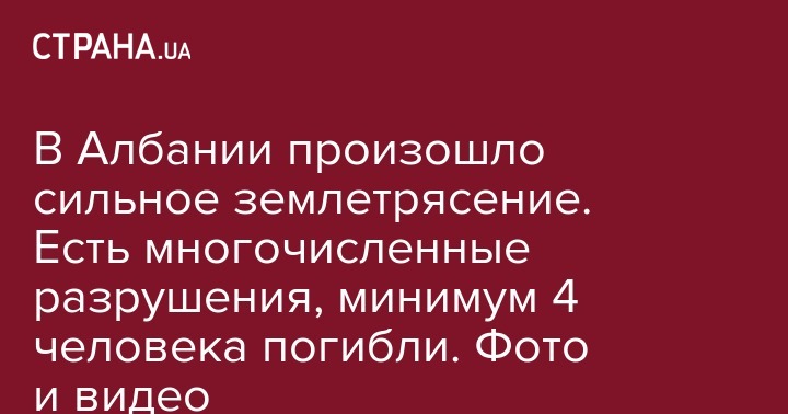 Жертвами стихии уже стали не менее 4 человек. Один погиб в округе Курбин к северу от албанской столицы Тираны, второй - в городе Дуррес. Где погибли еще два человека, не сообщается. Еще 150 человек пострадали. Об этом сообщает агентство Associated Press.