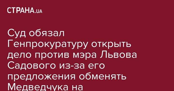 Суд обязал Генпрокуратуру открыть дело против мэра Львова Садового из-за его предложения обменять Медведчука на украинских заключенных в России
