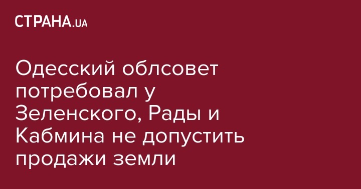 Одесский облсовет потребовал у Зеленского, Рады и Кабмина не допустить продажи земли