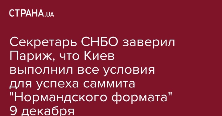 "Украина выполнила все необходимые условия для того, чтобы саммит в "Нормандском формате" состоялся, - уточнил Данилов. - Вместе с тем мы ожидаем встречные шаги России во время переговоров".