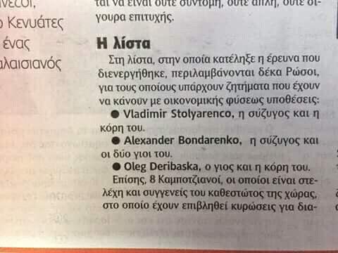 Так, кроме самого Дерипаски, гражданства Кипра также лишили его сына и дочь, а также экс-руководителей компании "Еврофинанс" Владимир Столяренко и Александр Бондаренко. Последних подозревают в России в мошенничестве, в связи с чем они были объявлены в международный розыск.
