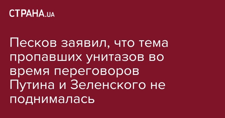 Во время разговора президента России Владимира Путина с его украинским коллегой Владимиром Зеленским вопрос о сантехнике, которая по словам Киева пропала с украинских военных кораблей, не поднимался, заявил официальный представитель Кремля Дмитрий Песков. Его цитирует ТАСС в среду, 27 ноября.