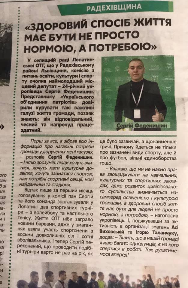 "Сергей Феденишин баллотировался от нашей партии на выборах в Лопатинскую ОТО. Хотим подчеркнуть, что "Украинское объединение патриотов – УКРОП" категорически осуждает любые преступления. Мы исключаем Сергея Феденишина из рядов УКРОПа", – сообщили на официальной странице организации в фейсбуке.