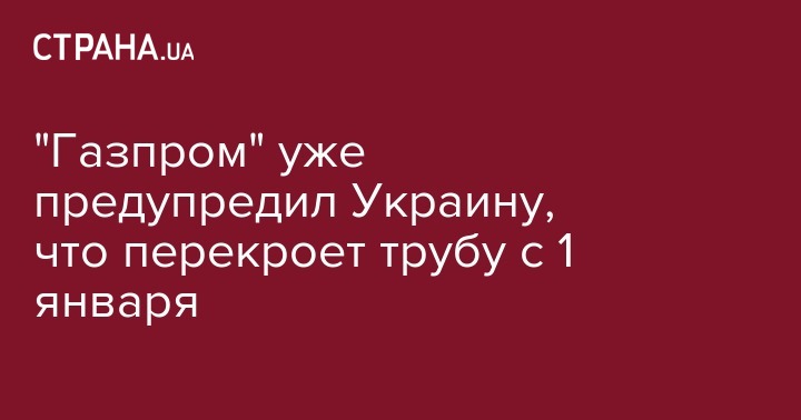 "Газпром" уже предупредил Украину, что перекроет трубу с 1 января