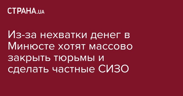 В связи с дефицитом финансирования Министерство юстиции планирует массово закрыть тюрьмы и сократить персонал, а также разрешить частные СИЗО. Как сообщает Укринформ, об этом в Киеве на презентации запланированных на 2019-2020 гг. изменений "To do list" заявил министр юстиции Денис Малюська.