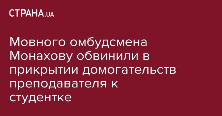Новоназначенная на пост уполномоченного по защите украинского языка Татьяна Монахова ранее шантажировала студентку Черноморского национального университета имени Петра Могилы, а также покрывала домогательства преподавателя. Об этом сообщает издание "Шиповник".