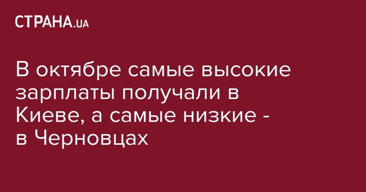 Самый высокий уровень зарплат в октябре зафиксирован в Киеве - 15862 грн, самый низкий - в Черновицкой области – 8 211 грн.