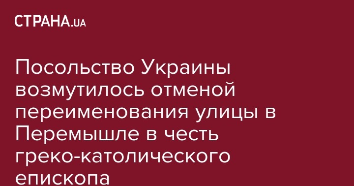 Украинское посольство в Польше выразило возмущение из-за отмены властями города Перемышля решения о присвоении одной из улиц имени епископа Украинской греко-католической церкви Иосафата Коциловского. Об этом посольство сообщило в Facebook.