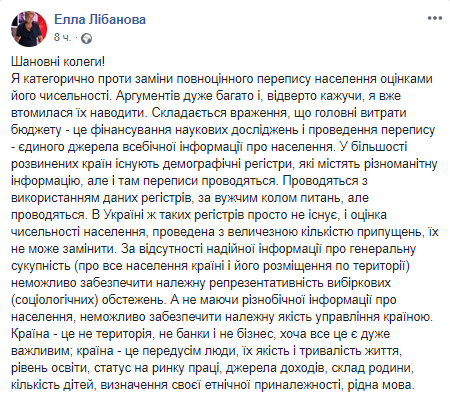 При этом, как пишет Либанова, не имея разносторонней информации о населении, нельзя обеспечить надлежащее качество управления страной.