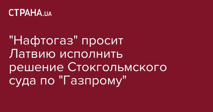 "Нафтогаз" просит Латвию исполнить решение Стокгольмского суда по "Газпрому"