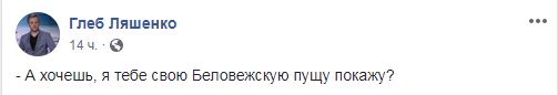 "А хочешь, я тебе свою Беловежскую пущу покажу?", - пишет также пользователь Глеб Ляшенко по поводу этой фотографии.