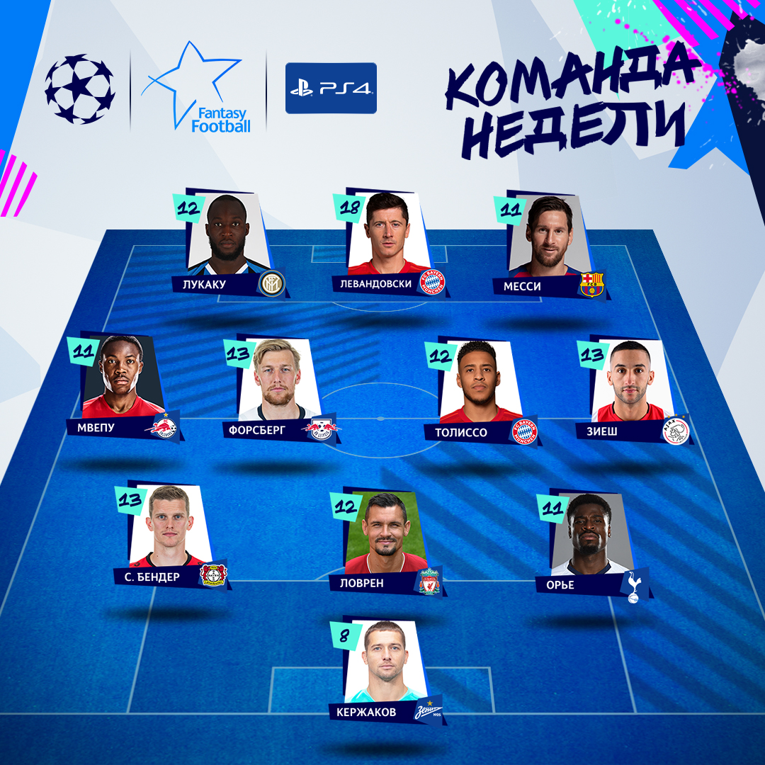В команду недели попадают те, кто набрал больше очков в Fantasy Football по Лиге чемпионов УЕФА от PlayStation.