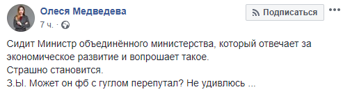 "Сидит Министр объединённого министерства, который отвечает за экономическое развитие и вопрошает такое. Страшно становится.