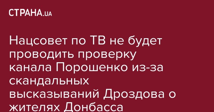 Нацсовет по телевидению и радиовещанию отказал в проверке 5 канала (принадлежит Петру Порошенко) из-за высказываний журналиста Остапа Дроздова в адрес жителей Донбасса по требованию депутата ОПЗЖ Олега Волошина.
