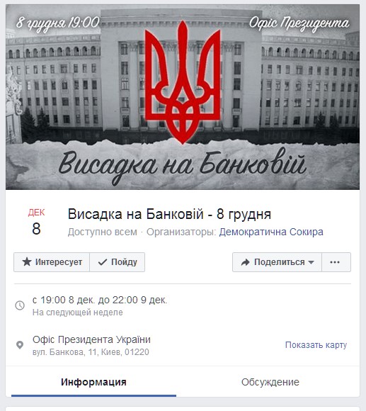 Поэтому организаторы призывают "украинцев прийти на Банковую 8 декабря в 19:00".