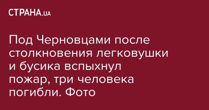 Под Черновцами после столкновения легковушки и бусика вспыхнул пожар, три человека погибли. Фото
