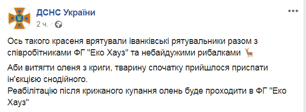 Спасение оленя. Фото6 Facebook/ MNS.GOV.UA