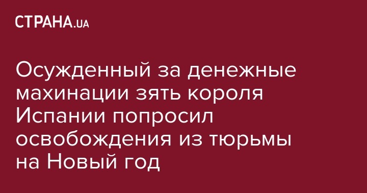 Осужденный за денежные махинации зять короля Испании попросил освобождения из тюрьмы на Новый год