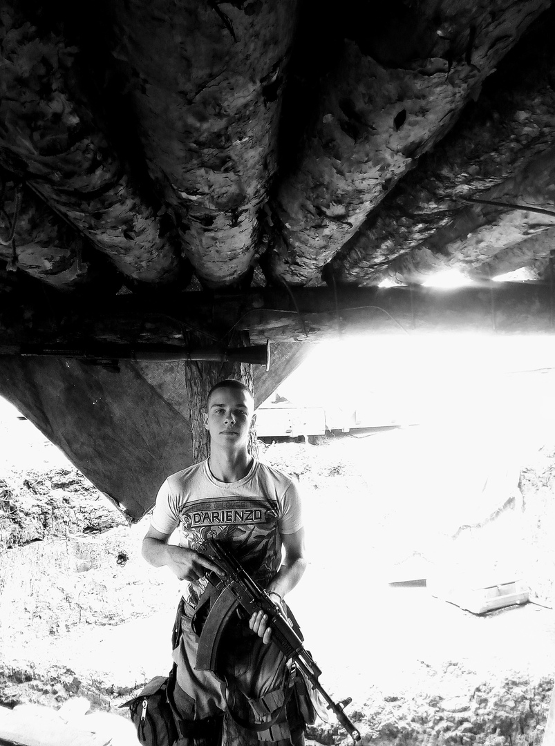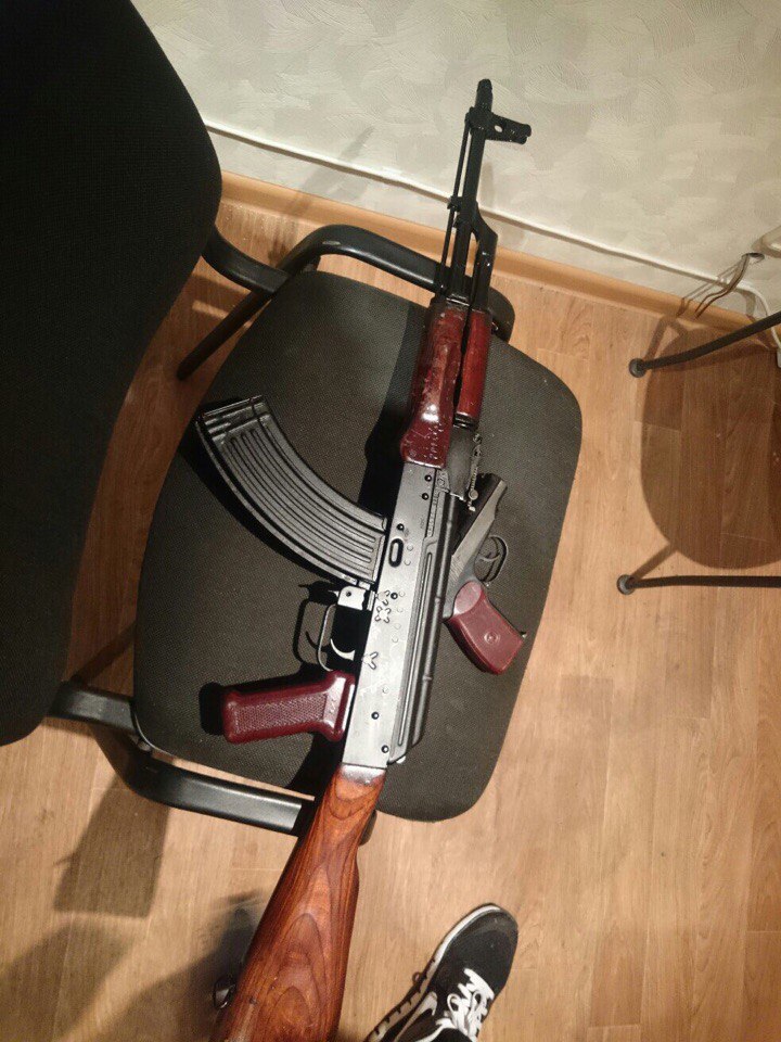 Также Евгений позирует с автоматом. И выгладывает фото своего оружия.