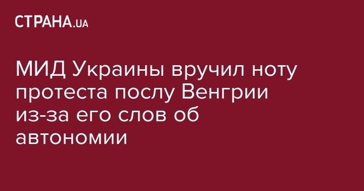 "2 декабря в МИД Украины был приглашен посол Венгрии на Украине Иштван Ийдярто, которому - в связи с интервью от 28 ноября - было сказано о неприемлемости его заявлений об автономии венгерского национального меньшинства на Украине и блокировки венгерской стороной деятельности комиссии Украина - НАТО. Вручена нота протеста", - говорится в сообщении, опубликованном на сайте МИД Украины.