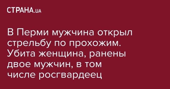 В российской Перми мужчина расстрелял из охотничьего ружья прохожих, убита женщина, ранены двое человек, в том числе сотрудник Росгвардии, который сидел за рулем прибывшей по вызову машины, пишет Интерфакс.