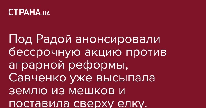 Кроме того, экс-нардеп Надежда Савченко рассыпала перед парламентом мешки с землей и поставила сверху елку, сообщает 112 Украина.