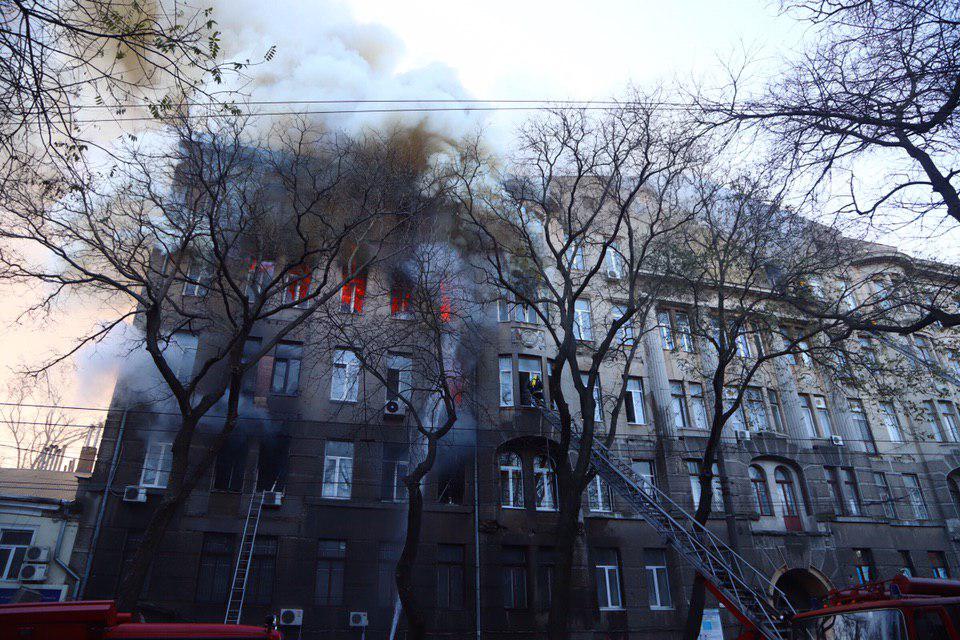 "Страшная новость пришла из моей родной Одессы: масштабный пожар охватил учебное заведение, где учатся несовершеннолетние, по сути, дети - колледж экономики, права и гостинично- ресторанного бизнеса на Троицкой, 25.