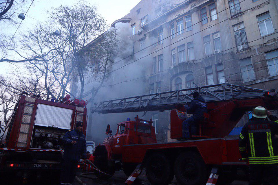 4 декабря в центре Одессы начался пожар. Огонь охватил 4 из 6 этажей Одесского колледжа экономики, права и гостинично-ресторанного бизнеса на Троицкой, 25.