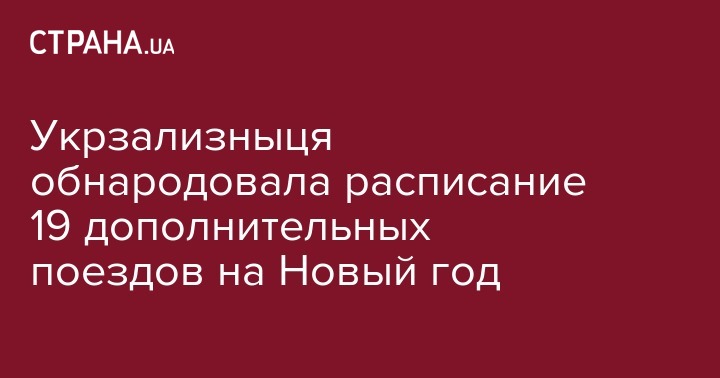 19 дополнительных поездов назначила Укрзализныця на период новогодних и рождественских праздников. Также для удобства пассажиров продлены маршруты еще семи поездов. Об этом сообщается на сайте ведомства.