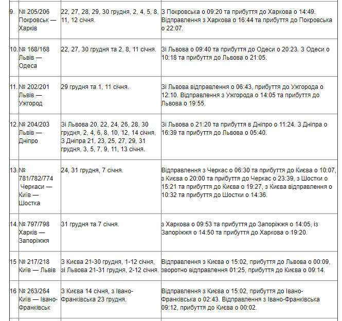 Укрзализныця обнародовала расписание 19 дополнительных поездов на Новый год