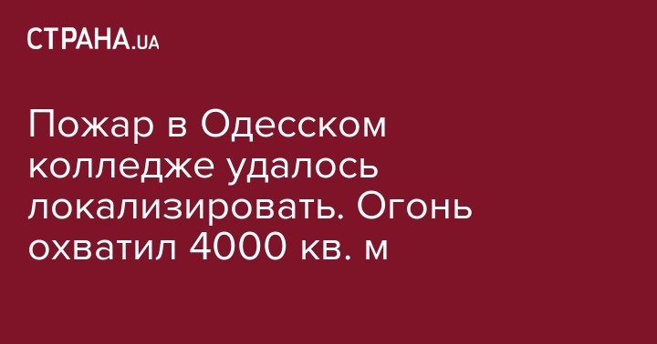 Также "Страна" писала, что площадь пожара в колледже экономики, права и гостинично-ресторанного бизнеса в Одессе увеличилась и составляет около 2000 кв. м. Кроме того, существует вероятность обрушения конструкций. На тот момент утверждалось о 12 пострадавших.
