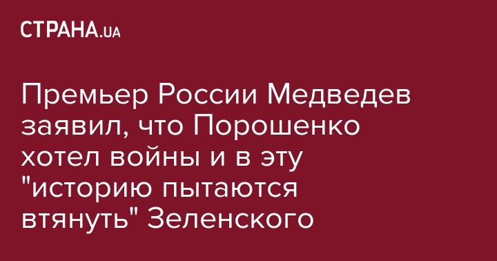Премьер России Медведев заявил, что Порошенко хотел войны и в эту "историю пытаются втянуть" Зеленского