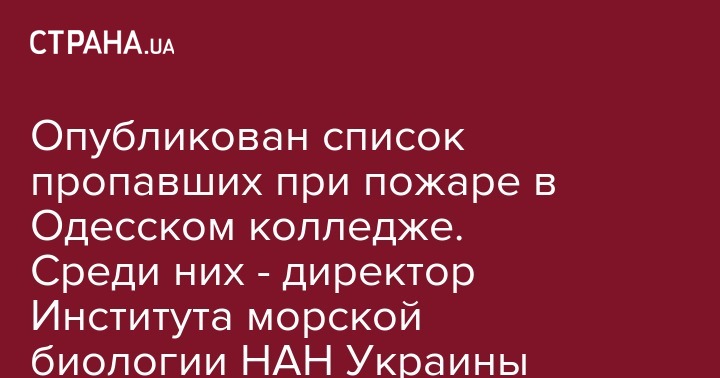 Опубликован список пропавших при пожаре в Одесском колледже. Среди них - директор Института морской биологии НАН Украины