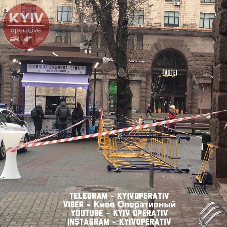 В Киеве на Крещатике на прохожих обрушились строительные леса, есть пострадавшие. Фото