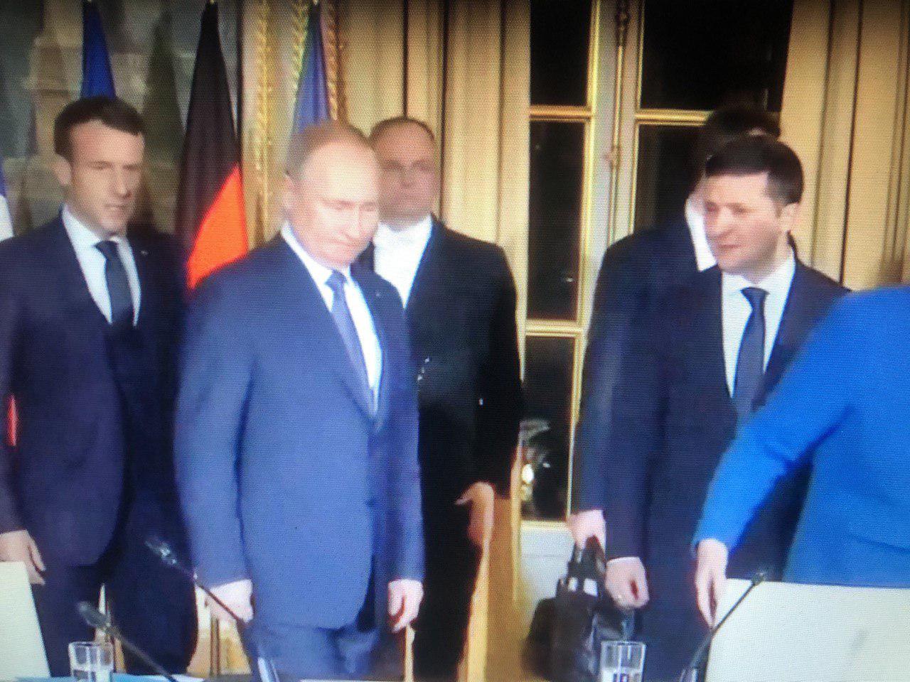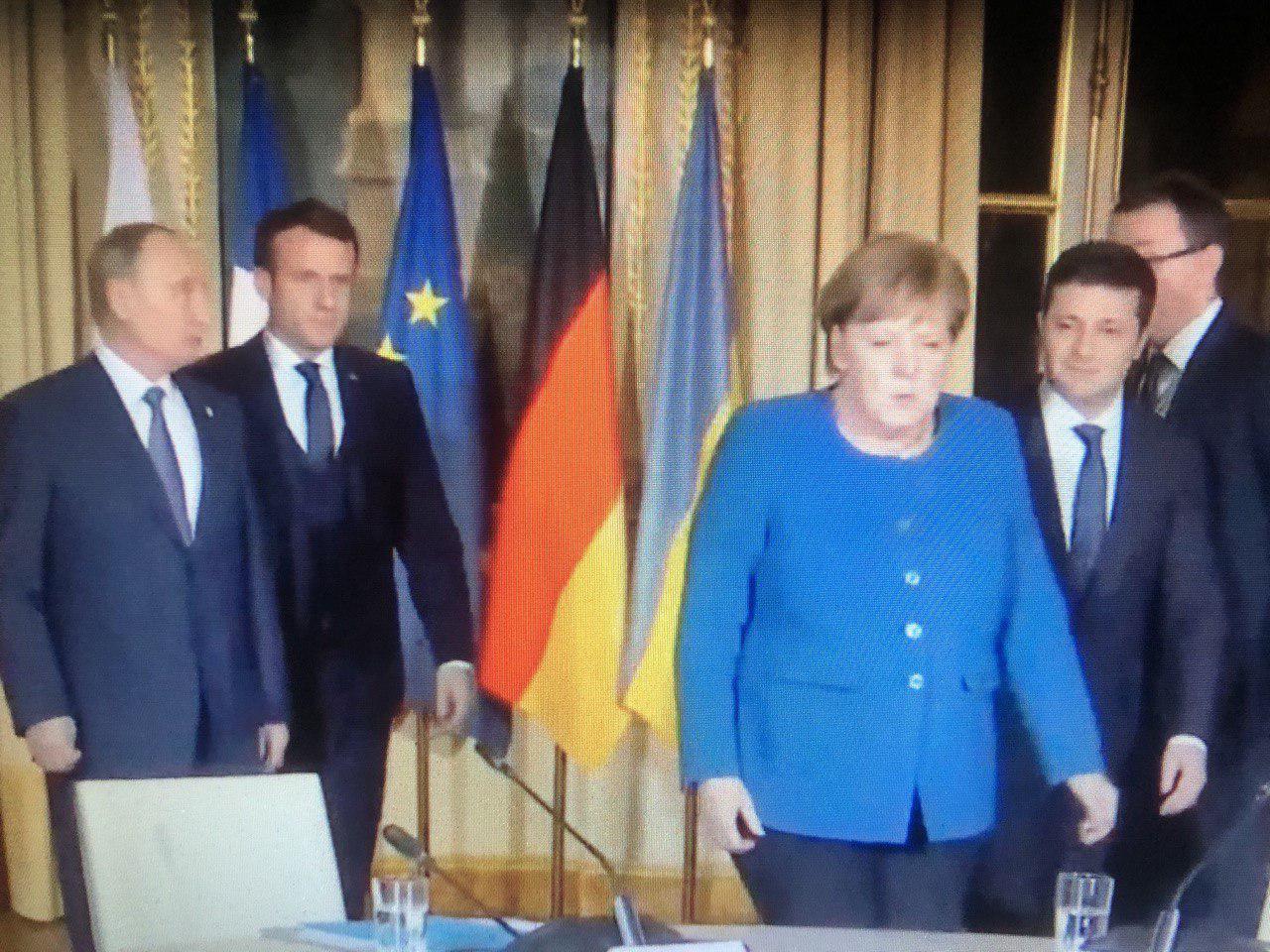 Общая встреча началась в 18:20 по киевскому времени с задержкой на 1 час 20 минут. До этого Зеленский провел беседу с президентом Франции Эммануэлем Макроном, затем с канцлером ФРГ Ангелой Меркель. После саммита "четверки", на которую отведено порядка трех часов, ожидается встреча Зеленского с Путиным, сообщили в Офисе президента Украины.