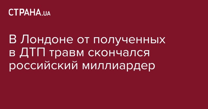 В Лондоне от полученных в ДТП травм скончался российский миллиардер