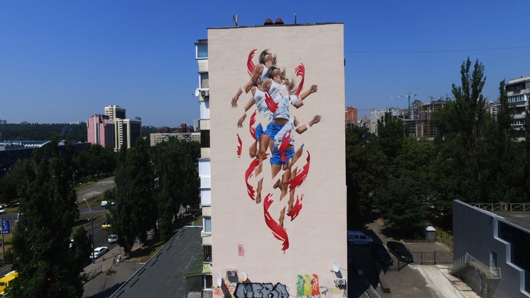 Ранее австралийский художник подарил Киеву картину девушки с цветами высотой в 17 этажей. Масштабный мурал изображен на стене здания, расположенного в микрорайоне Киева Троещина по адресу: Маяковского, 2/1.
