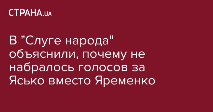 В "Слуге народа" объяснили, почему не набралось голосов за Ясько вместо Яременко