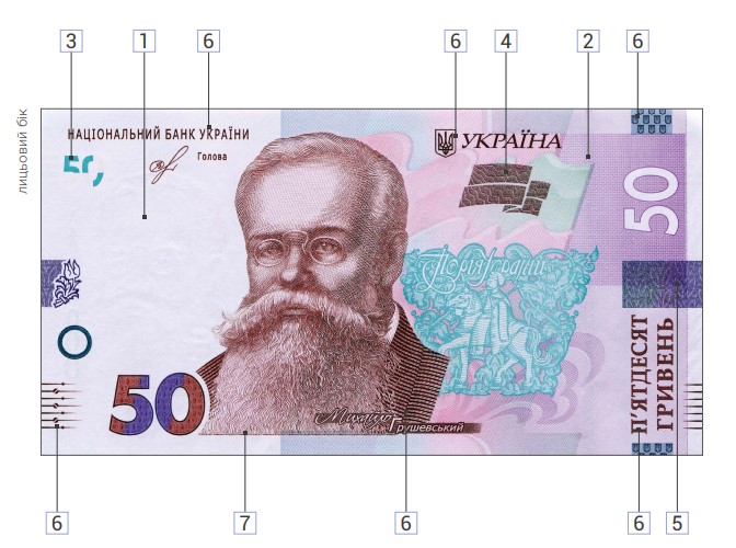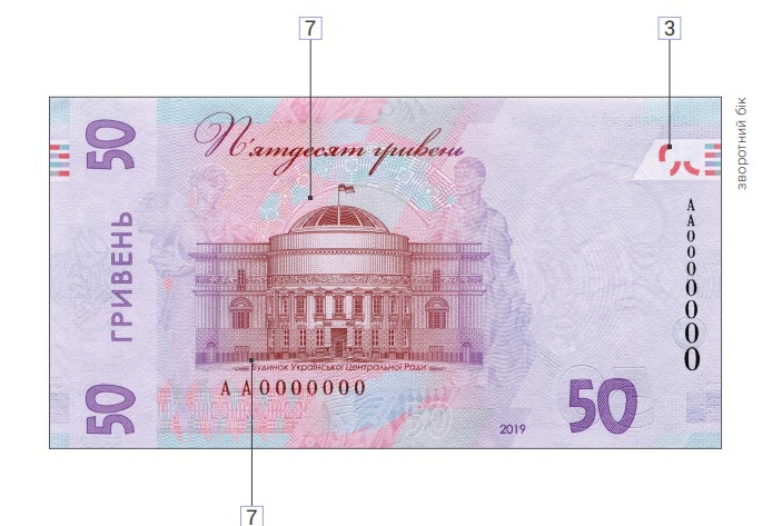 Национальный банк Украины с 20 декабря 2019 года вводит в обращение банкноту номиналом 50 гривен образца 2019 года. Размер банкноты – (72х136) мм, преобладающий цвет – светло-фиолетовый.