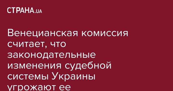 Комиссия за демократию через право Совета Европы (Венецианская комиссия) считает, что законодательные изменения в судебной системе Украины, в том числе и сокращение вдвое количества судей Верховного суда страны, угрожают ее стабильности и независимости.