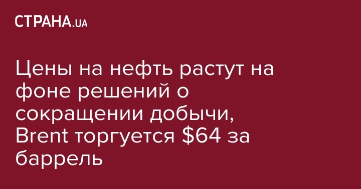 Цены на нефть растут на фоне решений о сокращении добычи, Brent торгуется $64 за баррель