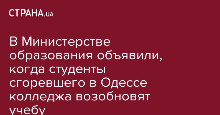 В Министерстве образования объявили, когда студенты сгоревшего в Одессе колледжа возобновят учебу