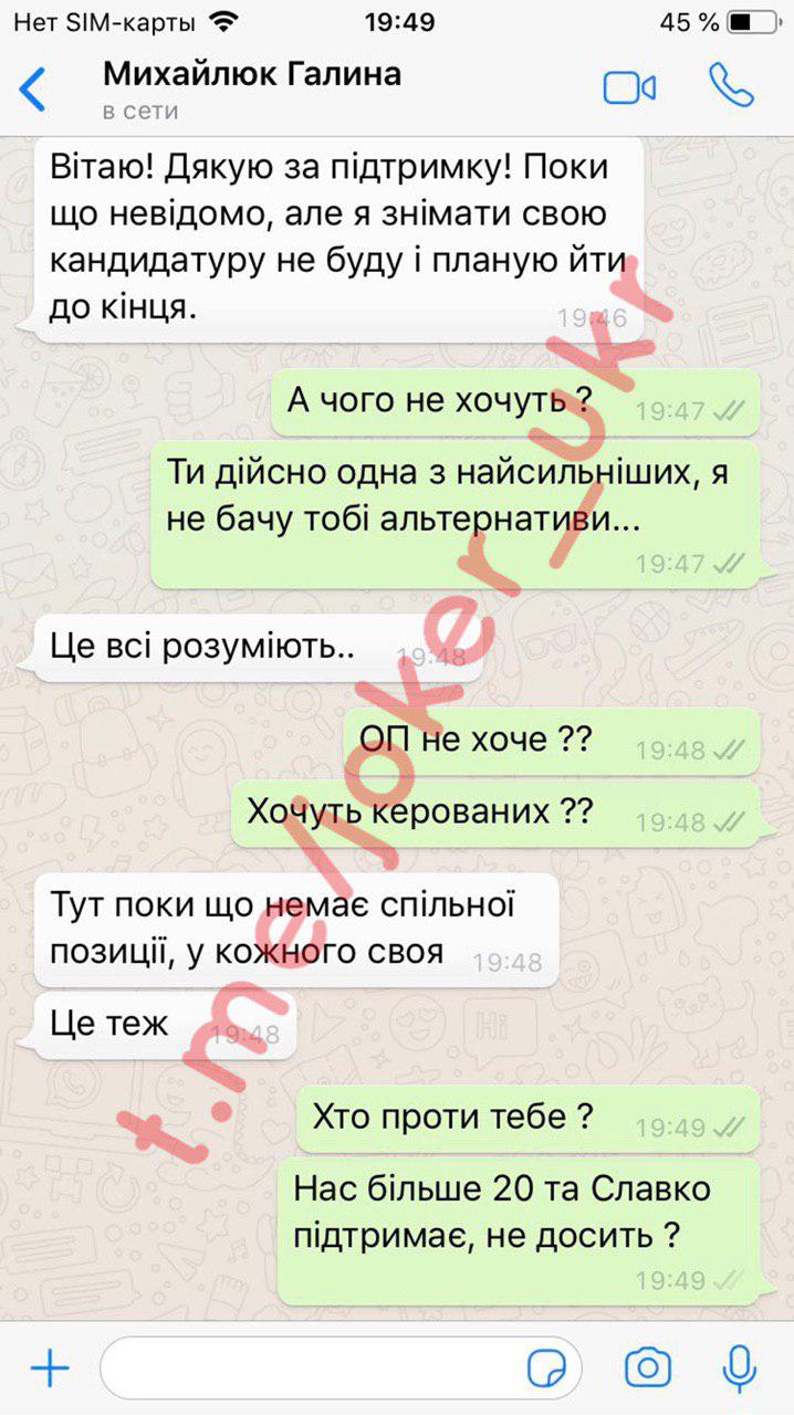 Из переписки становится ясно, что в борьбе за кресло главы комитета схлестнулись интересы разных сил. Так, за кандидатурой "некомпетентной, но полностью управляемой" (характеристика Джокера) Елизаветы Ясько стоит Офис президента. А против Михайлюк выступает руководство фракции "Слуги народа", хотя люди Коломойского во фракции на ее стороне.