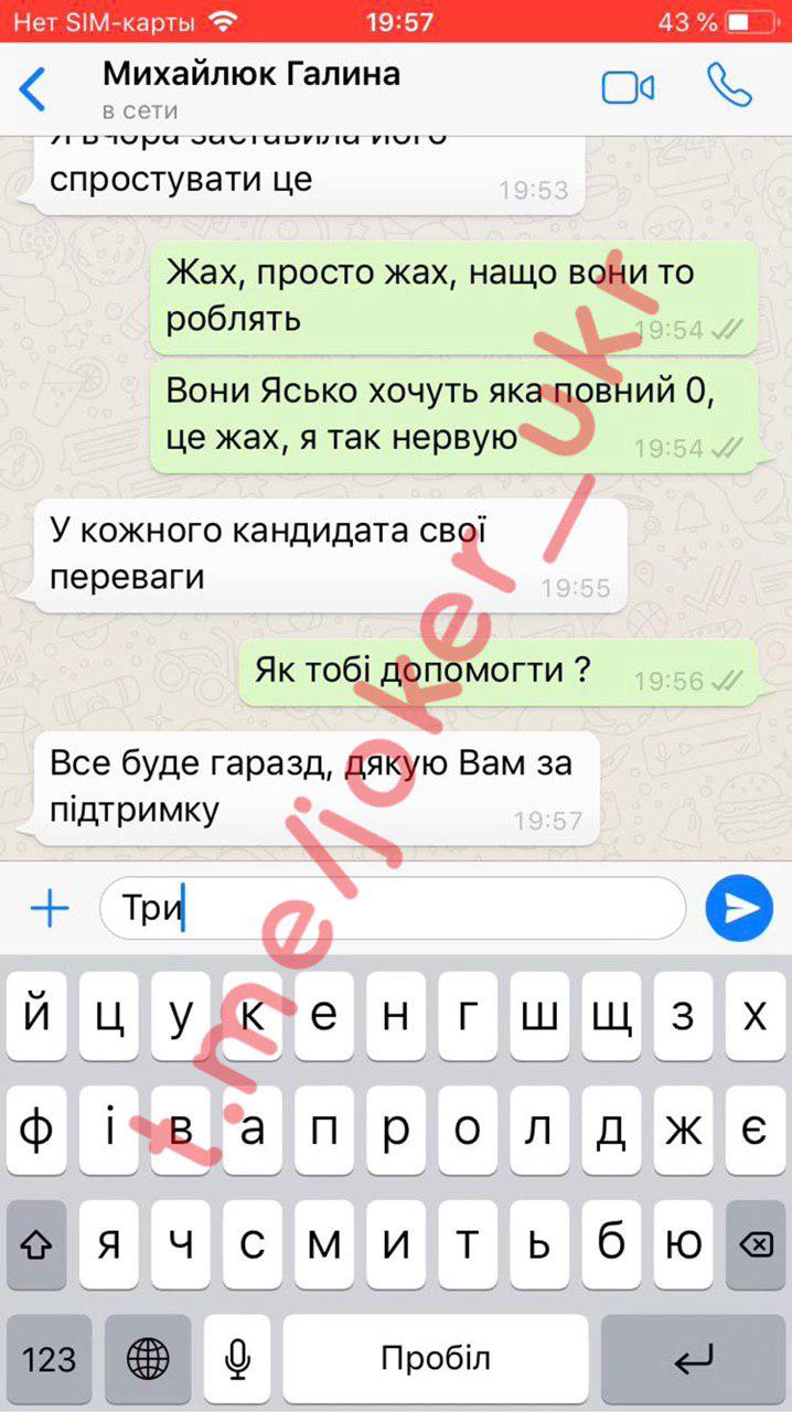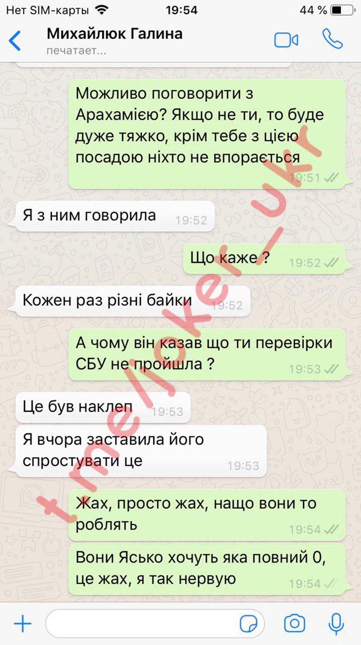 Также в переписке упоминается Давид Арахамия. По словам Михайлюк, он оклеветал ее, заявив, что она не прошла проверку в СБУ.