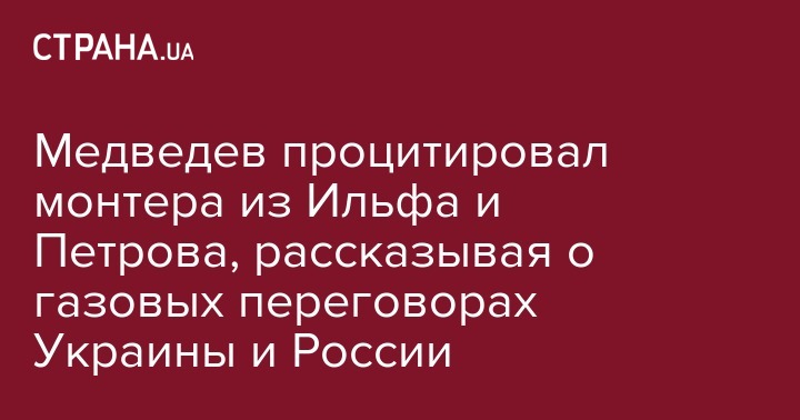 Медведев процитировал монтера из Ильфа и Петрова, рассказывая о газовых переговорах Украины и России