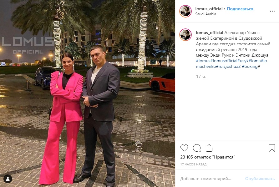 Усик решил посмотреть на своего будущего соперника и посетил поединок Джошуа и Руиса-младшего вместе с женой Екатериной.