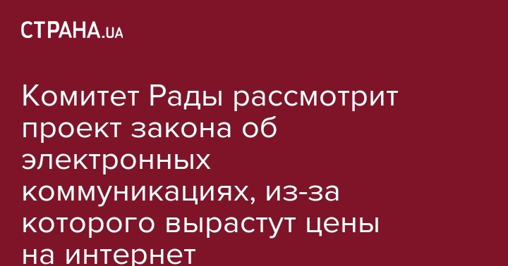 Комитет Рады рассмотрит проект закона об электронных коммуникациях, из-за которого вырастут цены на интернет